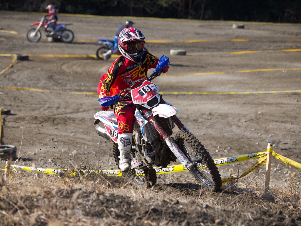 テストの合計タイム+ファイナルクロスの合計タイムが一番短かった人が優勝となります。コースの方はいつものモトクロスコースよりちょっと変則的てわフィニッシュのテーブルトップを飛んだあといつもいなべエンデューロで使われる丸太セクションに一度入ってから再度一コーナーに向け走り出します。